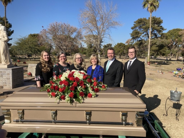 10:30 am – Viewing Trovita Ward Building Church of Jesus Christ of Latter-day Saints 3920 E. Brown Road Mesa, AZ 85205 Map 11:00 am – Funeral Service 2:00 pm – Interment Greenwood Memory Lawn Cemetery 719 North 27th Avenue Phoenix AZ 85009 Map |