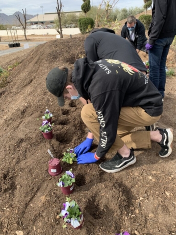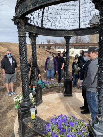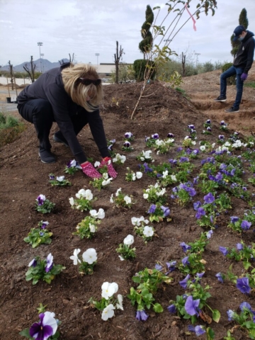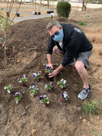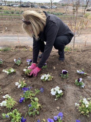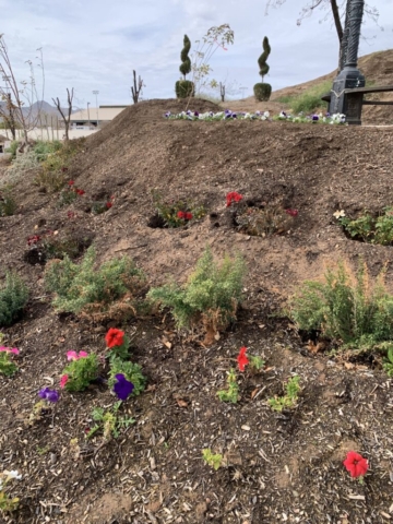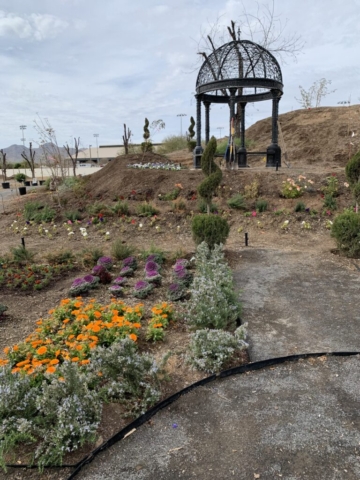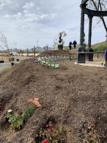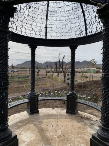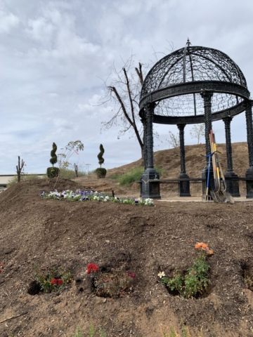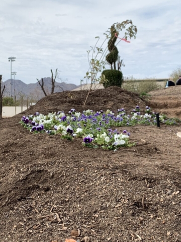 We decide to honor him with a pansy memorial garden. We have selected the site at the Queen Creek Botanical Gardens. It’s on a beautiful hill overlooking a pond and next to a cute gazebo.